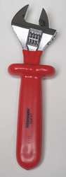 Insulated Adjustable Wrench, Number of Pieces 1, Jaw Capacity 1.1, Overall Length (In.) 8, Chrome Vanadium Steel Construction, Chrome Plated Finish, Double Layered Insulation Handle, Meets/Exceeds IEC 60900:2004